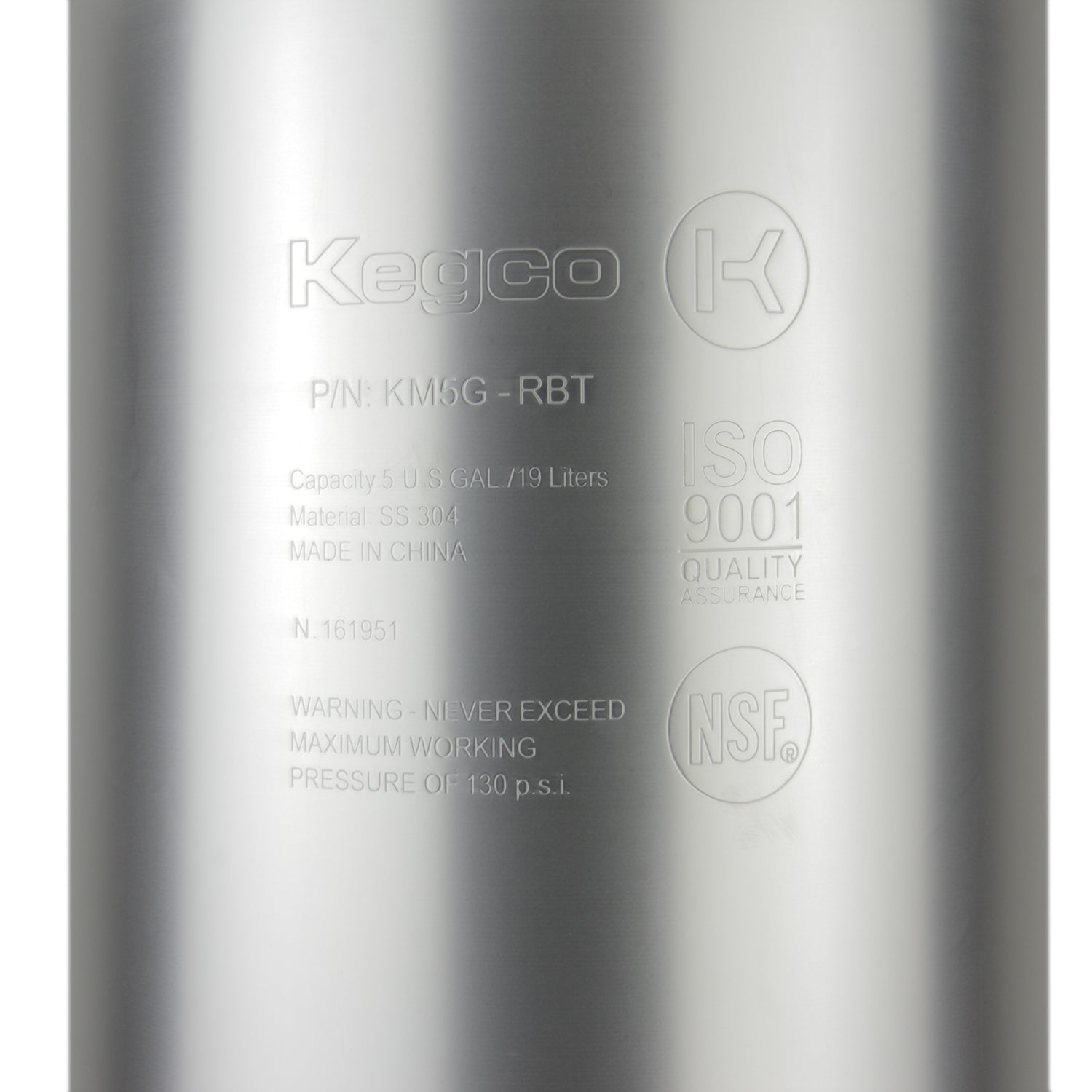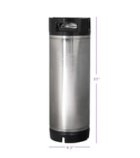 The Kegco 5 Gallon Rubber Handle Home Brew Beer Keg has a permanently molded rubber bottom skirt and top handle for easy carrying and stacking. These ball lock kegs have been approved by the National Sanitation Foundation (NSF) for commercial use. These homebrew kegs, also known as Pepsi Kegs or Cornelius Kegs, are constructed of 304 grade Stainless Steel and is designed for use will ball lock keg couplers. The ball lock fittings are easily accessible for convenient cleaning and maintenance. The stainless steel lid fastens tightly to the body and features a pressure release valve to easily depressurize the keg. They can be opened and filled with your favorite beverages, be it beer, soda, wine, kombucha or cold-brewed coffee.